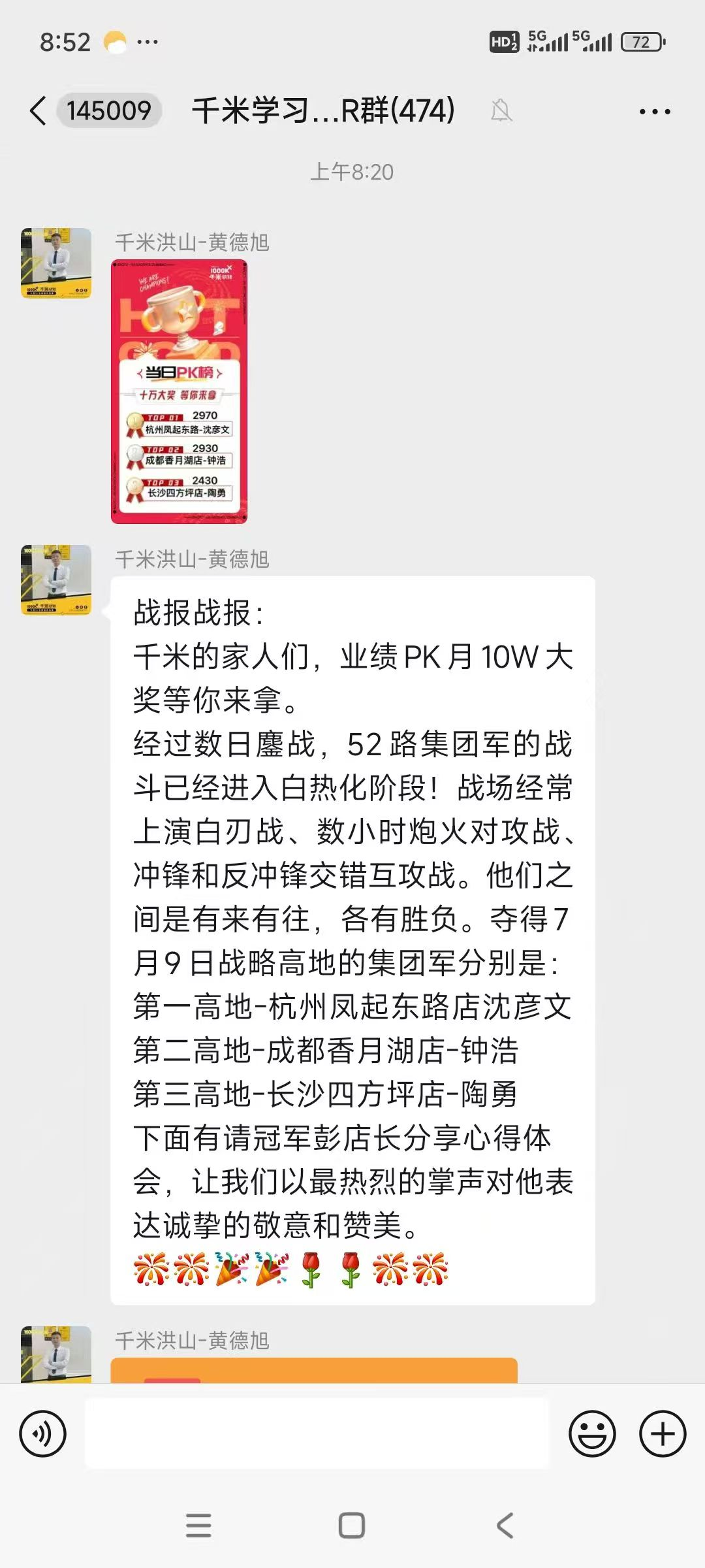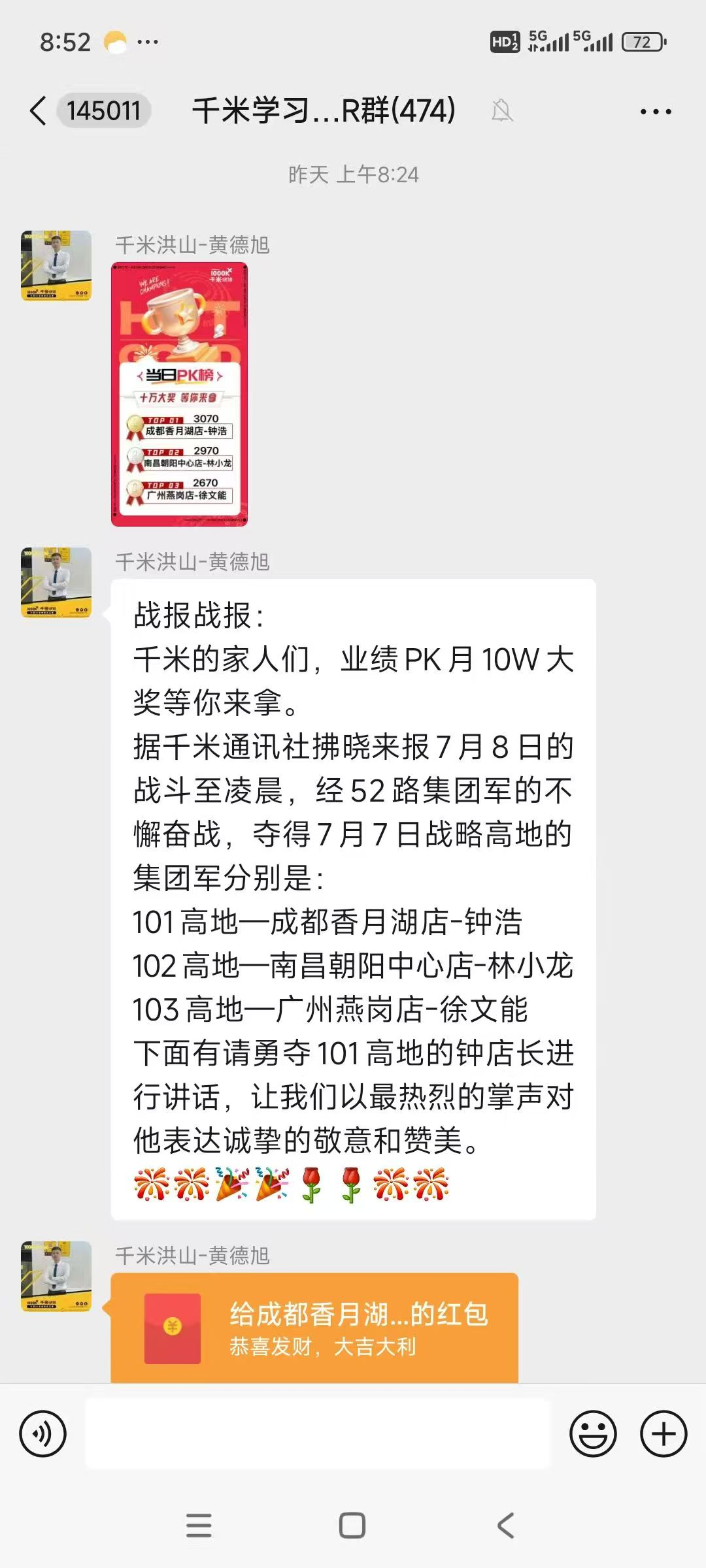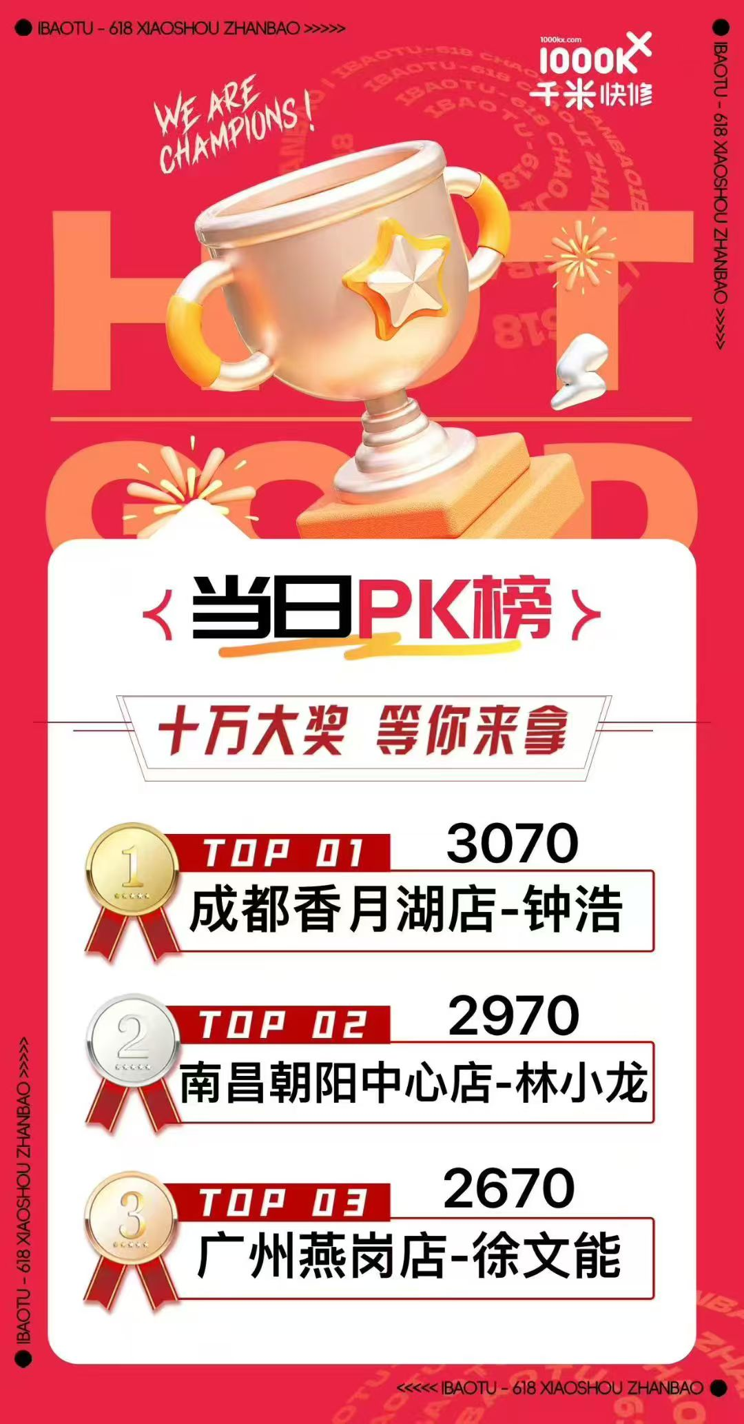 7月业绩PK月,52个PK小组打出了生死战,昨日毛利润积分前三强出炉。杭州凤起东路店获得单日冠军,线上订单越来越多,门店要做好每一单的承接,配合做好执行力考核的项目,为客户提供更好的服务!